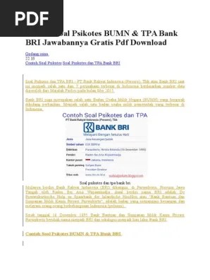Contoh soal psikotes bumn & tpa bank bri jawabannya gratis pdf download.